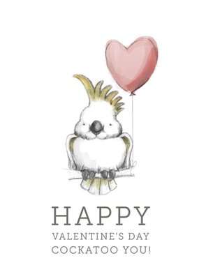 Illustration Of A Cockatoo With A Heart Shaped Balloon Valentine's Day Card