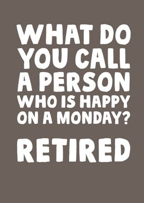 Funny What Do You Call A Person Who Is Happy On A Monday? Retired Retirement Card