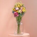 Soft, sunny and seriously pretty – this pink and yellow bunch is full of dried loveliness, from fluffy Bunny Tails to dainty Nigella blooms. It’s a feel-good gift that brightens their space (and their mood) with zero watering and all the charm.