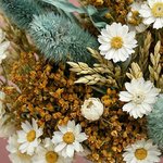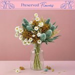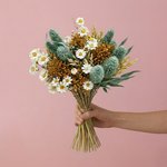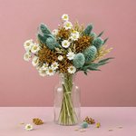A bright and uplifting mix of blue misty setarea, natural rice flower, white rhodanthe and sunny yellow broom.