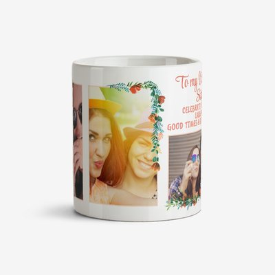 To My Wonderful Sister Typographic Photo Upload Mug