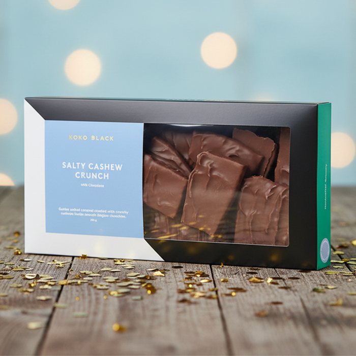 Treat your favourite person to this Salty Cashew Crunch from Koko Black for a proper spoil. It's a dreamy mix of golden salted caramel and crunchy cashews tucked inside smooth Belgian milk chocolate. You'll guarantee a big smile with this handcrafted, 100% natural treat.