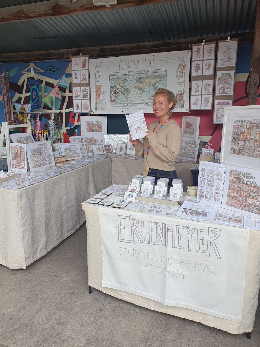 I use fineliners and watercolour paints to create animal characters and detailed pictures of the society in which they live. I’m writing a book all about it! I love my cat, coffee, reading, celebrating and giving presents.