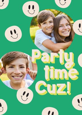 Party Time Cuz Smiley Faces Photo Upload Birthday Card