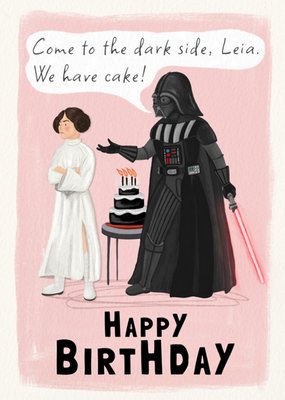 Star Wars Come To The Dark Side We Have Cake Illustrated Princess Leia And Darth Vader Birthday Card
