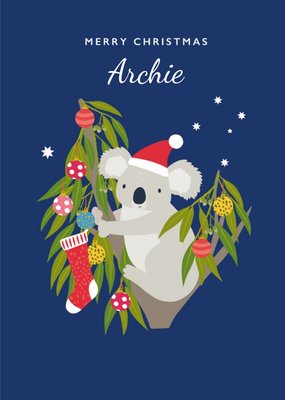 Cute Illustration Of A Koala Perched In A Tree With Decorations Christmas Card