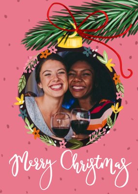 Illustration Of A Bauble With A Photo Frame On A Pink Background Photo Upload Christmas Card