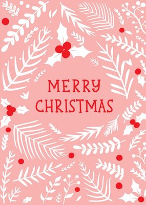 Modern Illustrated Foliage Holly Merry Christmas Card