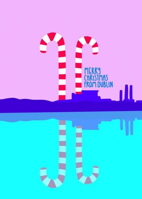 Illustrated Candy Cane Silhouette Skyline Christmas Card