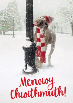 Cute Funny Dog Tongue Stuck On Ice Pole Christmas Card
