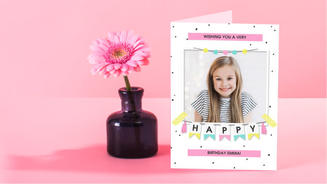Happy birthday to you, happy birthday to you. We have hundreds of kids' birthday cards for girls and boys that can be customised with their photo and name on it too!