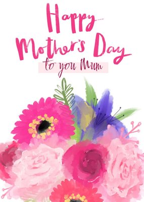 Bright Pink Watercolour Flowers Happy Mother's Day Card