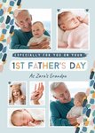 Front of card: 1st Father's Day Photo Upload Card Colourful border with six photo frames. Text reads: "Especially for you on your 1st Father's Day As Zara's Grandpa". 'As Zara's Grandpa' can be personalised!