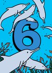 Featuring an underwater scene with large number 6 surrounded by dolphins.