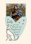 Front of card: Featuring an illustration of a dog with a sentimental message in a heart shape. Text reads: "Buddy was more than a pet. A loyal friend you won't forget". 'Buddy' can be personalised!