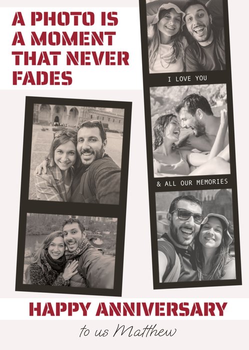 “A photo is a moment that never fades, I love you & all our memories, Happy Anniversary to us Matthew”.