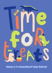"Time for treats, have a t-rexcellent day Harry!"