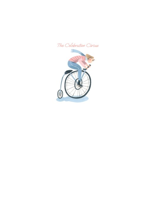 An adorable Birthday card featuring a hand-painted, watercolour illustration of three circus elephants doing a balancing act on each other's backs, they reduce in size as they get closer to the top of the stack. All three elephants are holding cakes with their trunks. The design has dots in the background.