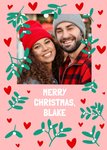 A warmhearted and festive Christmas card featuring a hand-drawn mistletoe and love hearts overlapping the one photo upload area.