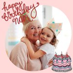 Front of card: Illustrated pink birthday cake on a pink background with round photo frame in the centre" Text reads: "Happy Birthday Nan" With editable photo.