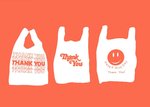 Illustration of plastic baps each with typographic text"