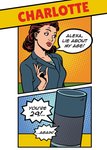 Front of card: Featuring a vintage comic illustration of lady speaking to a virtual assistant device. Text reads: "Charlotte Alexa, lie about my age! Your 29!.. again!".