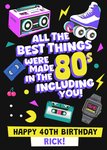 "All the best things were made in the 80s including you! Happy 40th birthday rick!". 'Happy 40th birthday rick!' can be personalised!