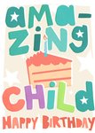 Collage style birthday card with big, playful typography and cake illustration on a neutral background.