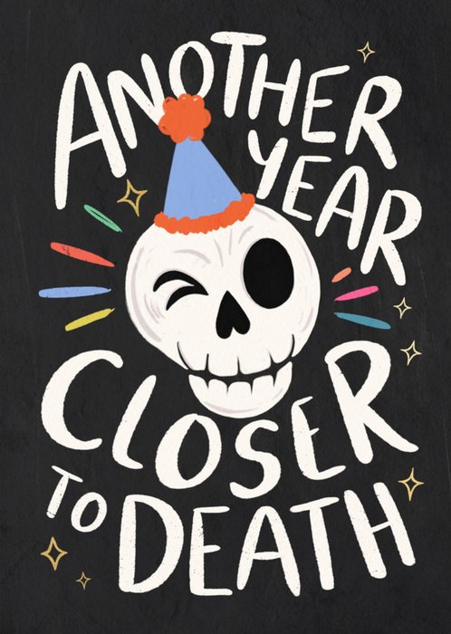 Another Year Closer To Death Funny Illustrated Skull Birthday Card