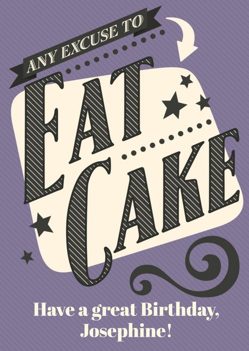 Any Excuse To Eat Cake Personalised Text Birthday Card