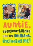 Featuring two photo upload frames with a wavy border at the top of the card. Underneath is bold typography in a mix of pink, purple and blue on a yellow background.