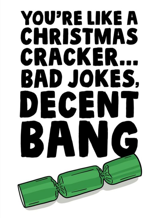 Text reads: "You're Like A Christmas Cracker.. Bad Jokes Decent Bang."