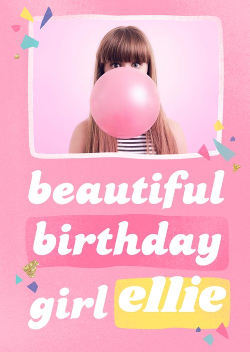 Beautiful Birthday Girl Pink Photo Upload Card