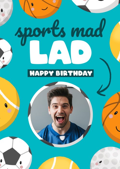 Bev O'Connor Sports Mad Lad Illustrated Sports Balls Photo Upload Birthday Card