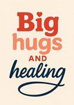 Minimalist design with soft cream background and bold multicoloured typography. The word “Big” includes a heart as the dot of the letter ‘i,’ and “Healing” is written in a flowing script with an underline flourish.