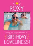 "Roxy wishing you heaps and heaps of birthday loveliness". 'Roxy' can be personalised!