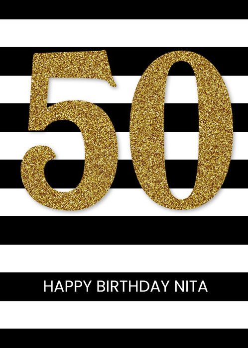 Black And White Striped Metallic 50th Birthday Card
