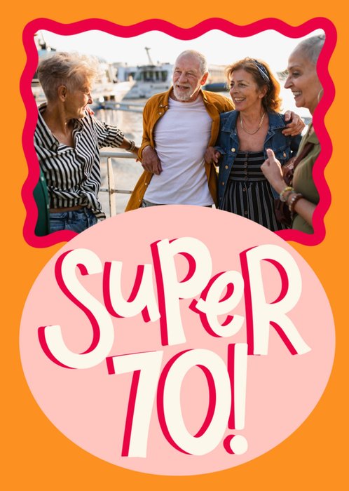 Bold Super 70 Wavy Border Photo Upload Birthday Card