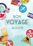 'Bon Voyage' -fixed text, 'Harry!' this can be personalised!
