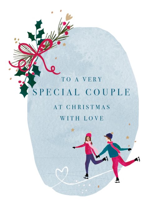 • Special Couple Ice Skaters Illustrated Christmas Card