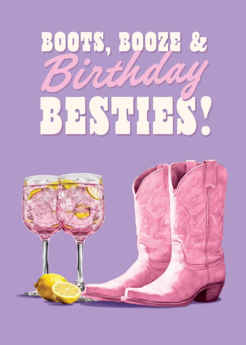 Boot Booze And Birthday Besties Illustrated Cocktail And Cowgirl Boots Birthday Card