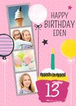 Bright Pink Balloons And Cupcake Happy Birthday Photo Card