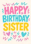 Bright Typographic Happy Birthday Sister Card