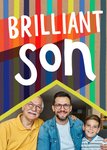 Front of card: Featuring colourful, hand-painted effect typography with one photo upload frame that has a yellow triangular border. The card is adorned with vertical decorative painted stripes in various colours in the background. It’s a personalised card celebrating a son with enthusiasm and admiration.