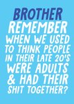 Brother Remember When We Used To Think People In Their Late 20's Were Adults Birthday Card