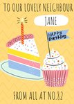 'To Our lovely Neighbour Jane Happy Birthday From all at no.82' - ‘Happy Birthday’ can be personalised!.