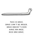 Front of card: Featuring an illustration of a snake. Text reads: "This is Dave, Dave can't be arsed. Dave doesn't even have an arse. Nice one Dave". 'Dave' can be personalised!