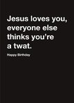 Carte Blanche Jesus Loves you but the rest think you are a twat Happy Birthday Card