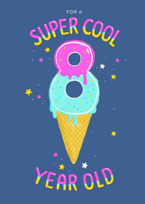 Cat MacInnes Illustration Bold Typography Eight Year Old Birthday Card