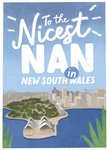 Front of card: Birthday Card Illustration of New Sydney South Wales and hand written bold typography. Text reads: "To the nicest Nan in New South Wales".